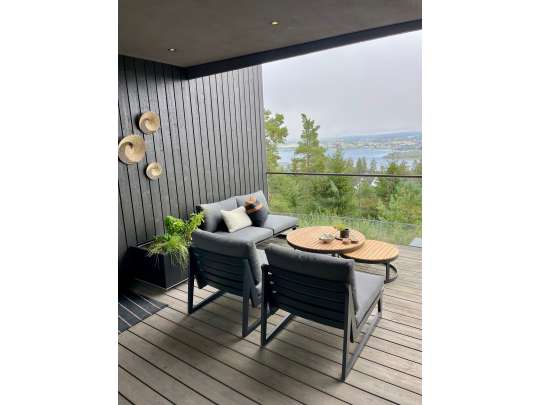 Gardenart liten hjørnesofa med stol i sort aluminium med flott designOpprinnelig pris var: kr63 960.kr55 960Nåværende pris er: kr55 960. -
