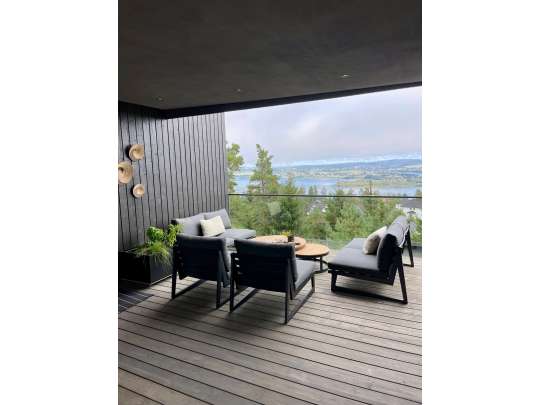 Gardenart stor hjørnesofa og stol i sort aluminium med flott designOpprinnelig pris var: kr80 950.kr70 950Nåværende pris er: kr70 950. -