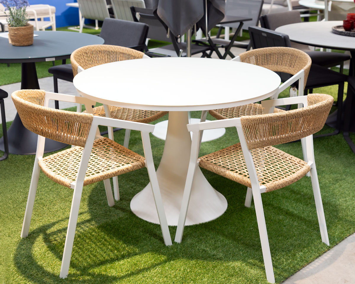Gardenart rundt spisebord 110 cm i aluminium/glass. Hvit (100521)