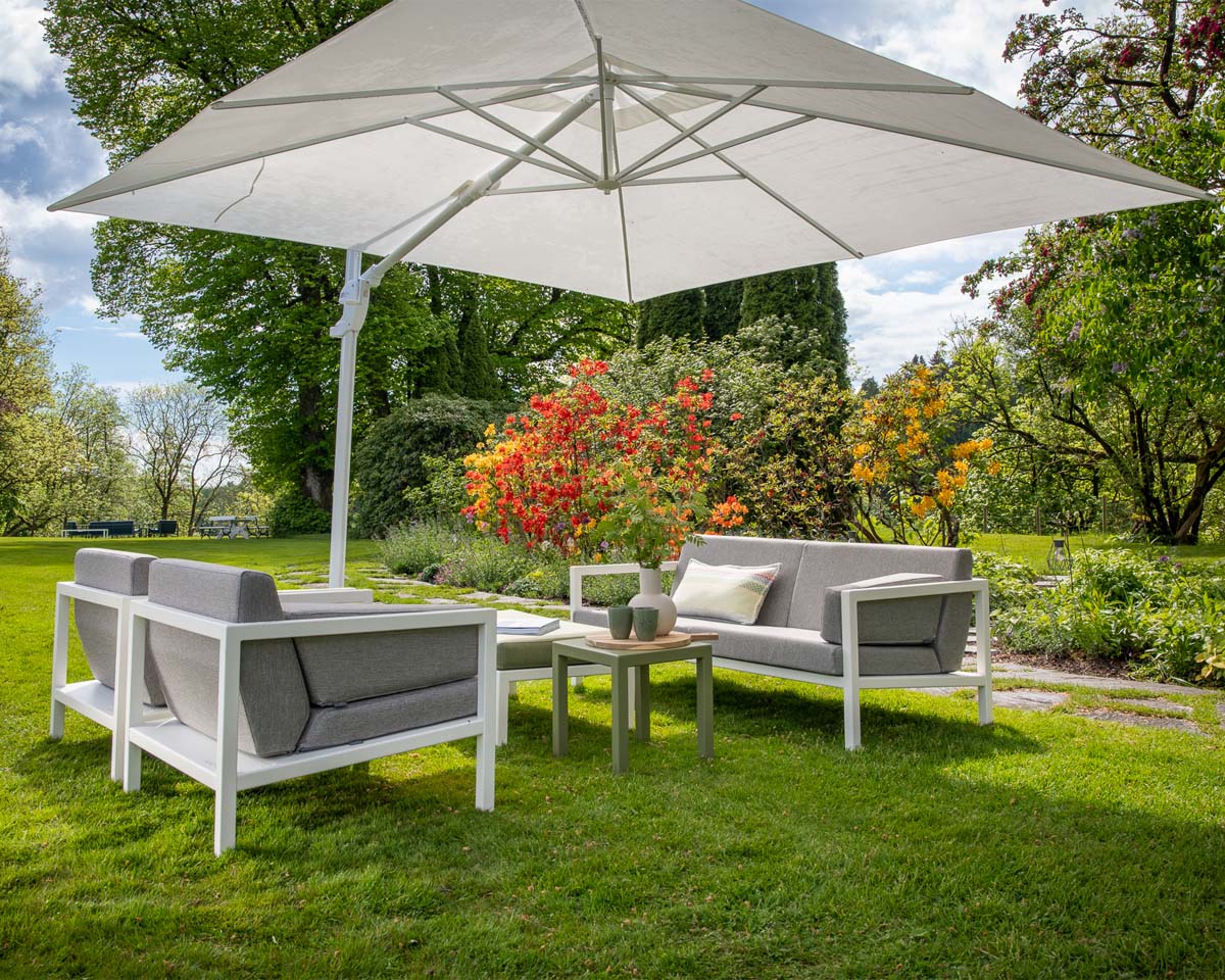 Parasoll hvit 3×3 meter med granitt fot