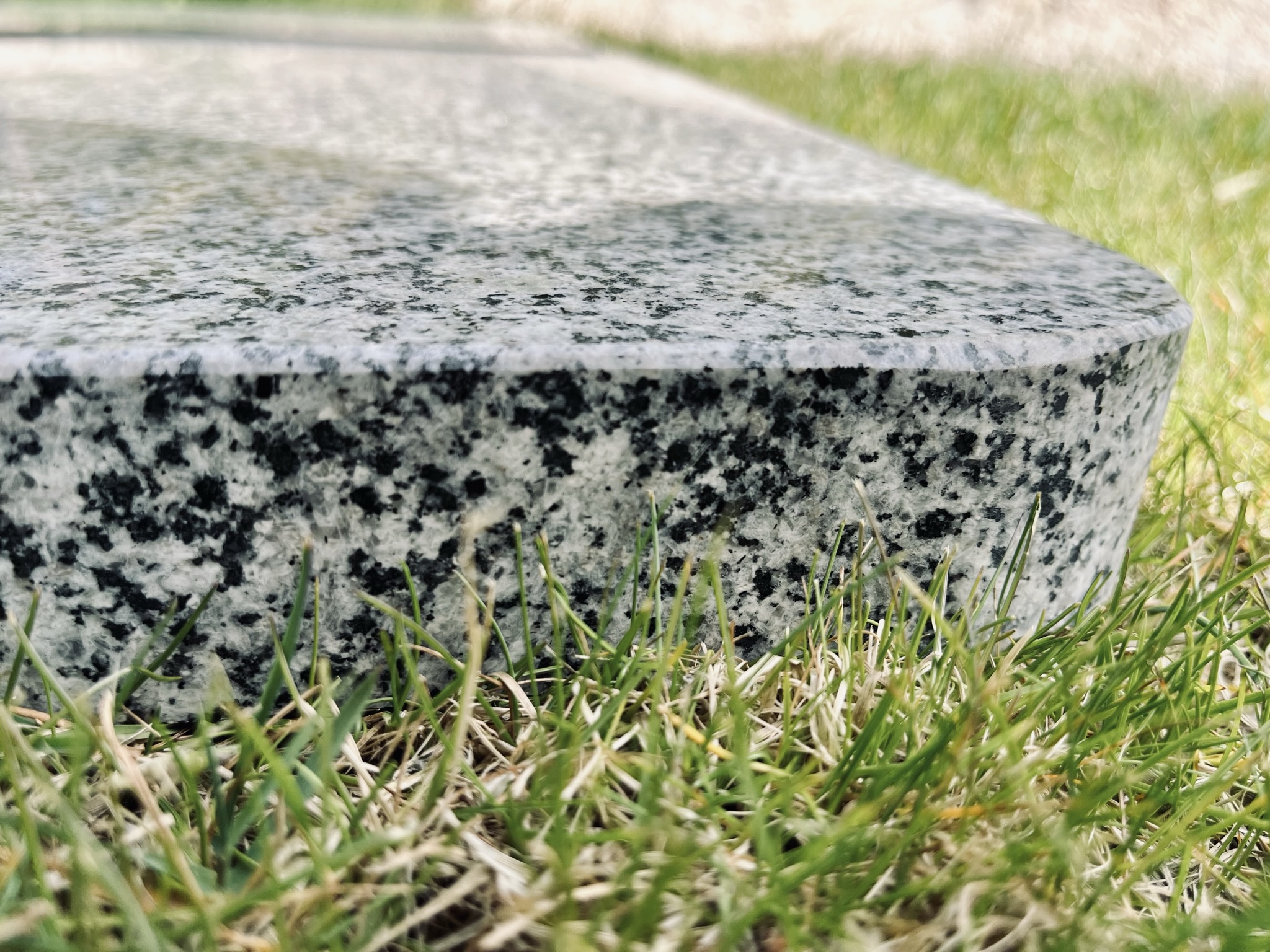 Parasoll i lys farge med fire kvadratiske granitt steiner. Steinene veier ca. 100 kg (4stk. x 25 kg.)