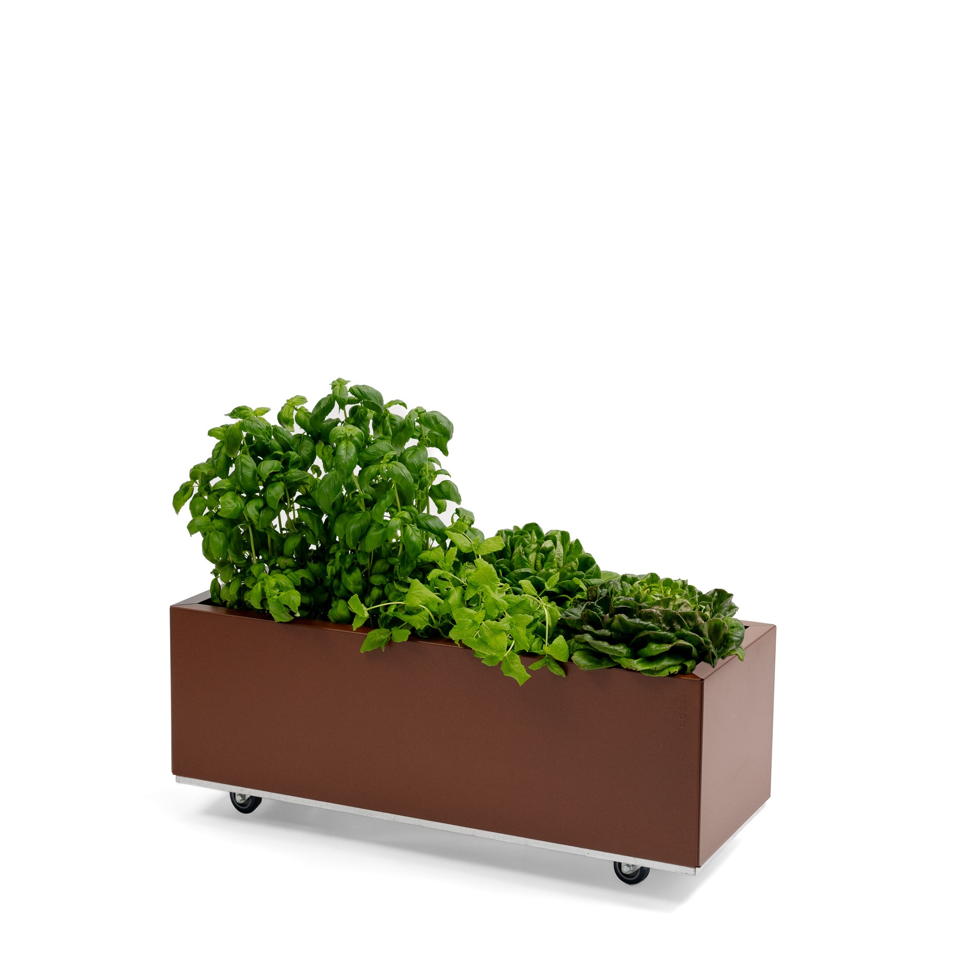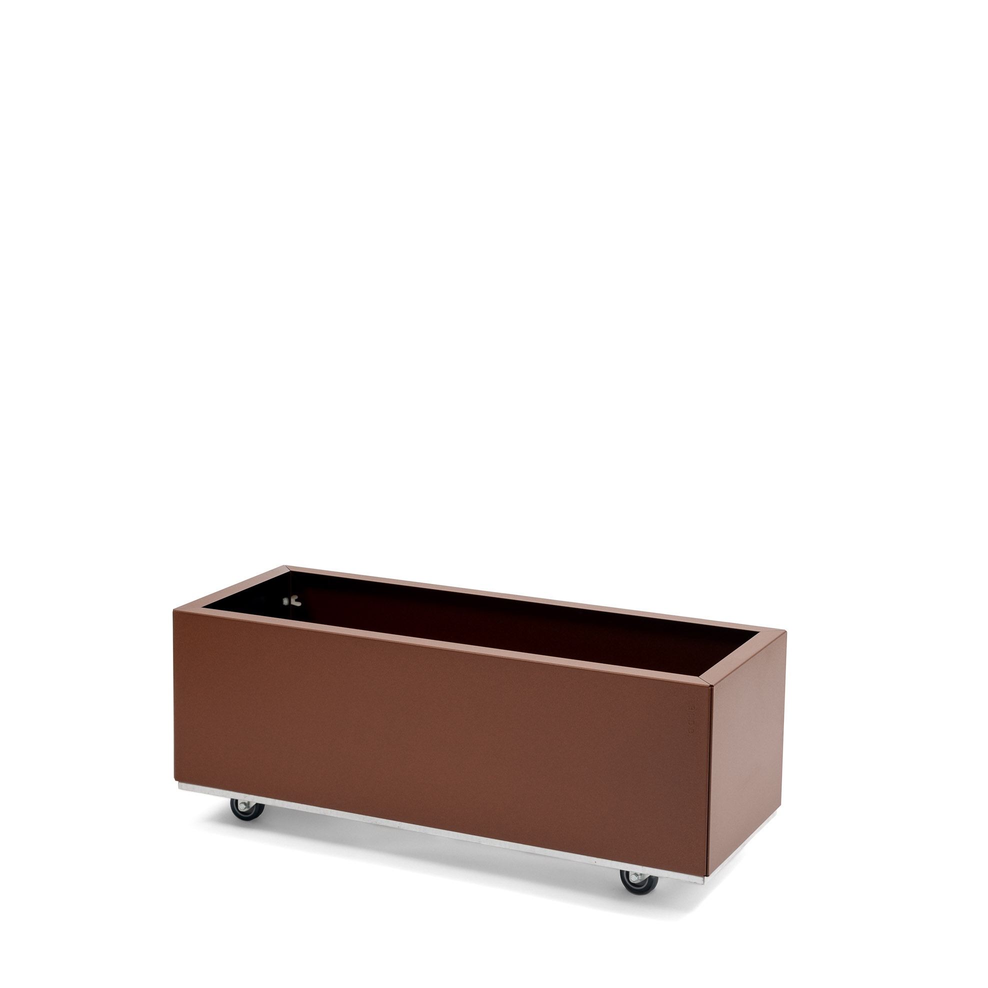 Plantekasse i Rust Lakk 80x30x25 cm med bunn og hjul. BEDD