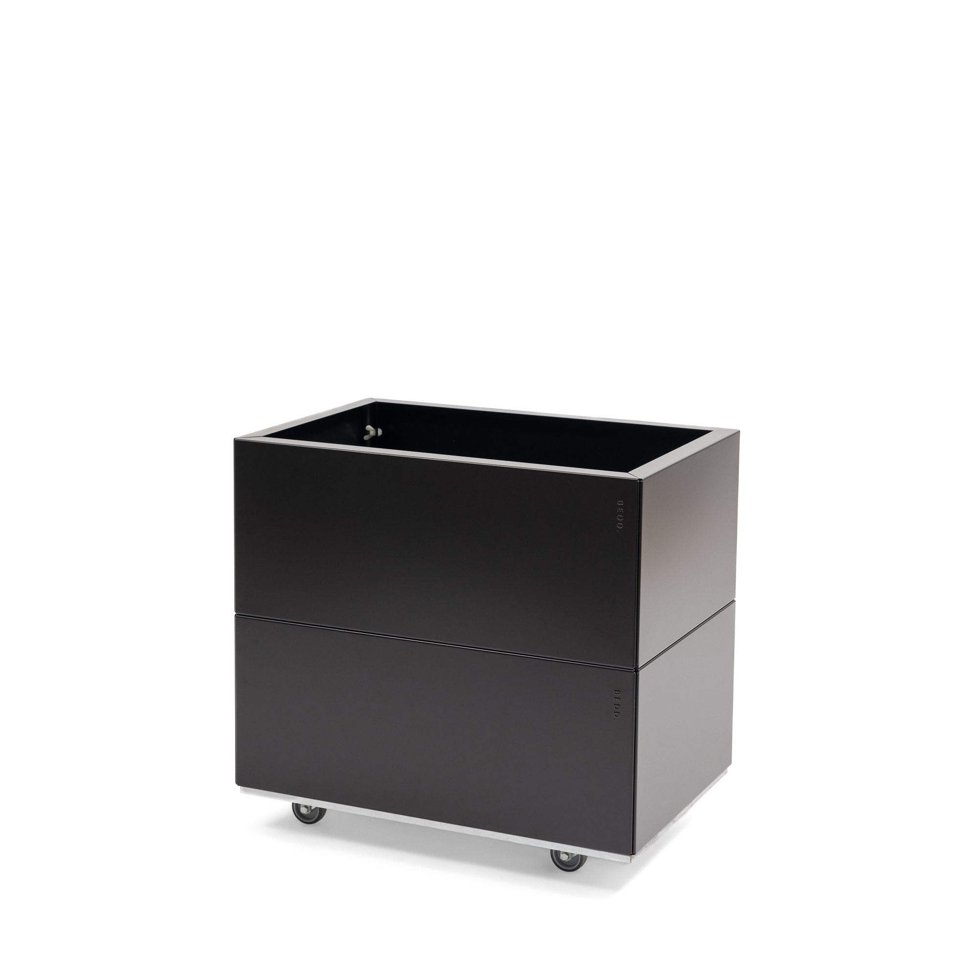 Plantekasse i Sort 60x40x50 cm med bunn og hjul. BEDD